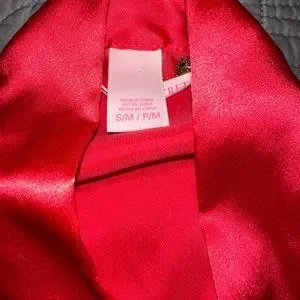 Victoria Secret satin robe. It’s a dark hot pink. It looks a little red from the photo.
