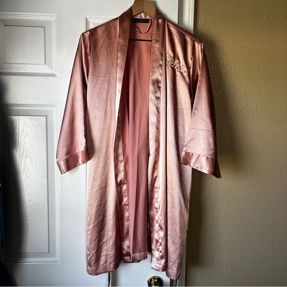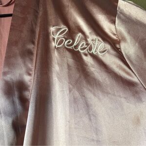 Luxurious pink satin robe. Perfect for lounging in style and comfort. Engraved with name Celeste