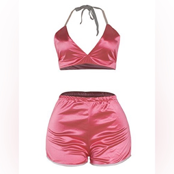 Details: adjustable halter neck bikini top with dolphin shorts set,