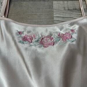 Pink Satin Slip Dress Blush Floral Embroidered Y2K Coquette