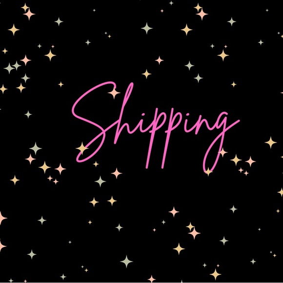 Stylish pink script graphic featuring the word 'Shipping' on a black starry background. Bold pink lettering adds a playful, modern touch. Perfect for digital use, social posts, or decorative prints. The pink color stands out against black for high contrast and visual impact.