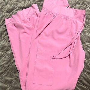 Comfortable pink scrub set. Includes top and pants. Perfect for healthcare professionals. Size M top and bottom.
