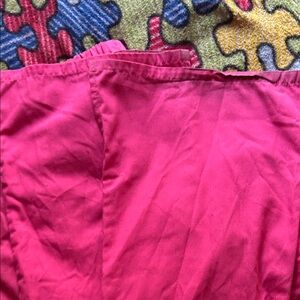 Comfortable pink scrub set with top and pants. Ideal for medical professionals. The pants are wide leg and have some wear on the bottoms of the pants legs .. They are namebrand Cherokee and they are both the size small