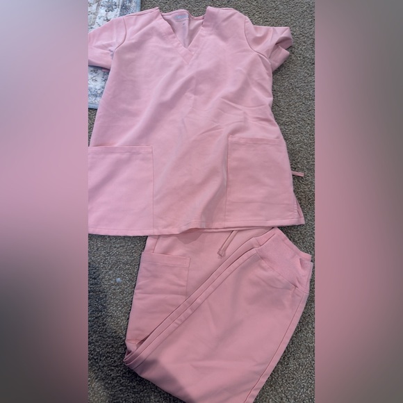 Mandala light pink scrub set Top- size small Bottoms- size small petite joggers Color- LIGHT PINK