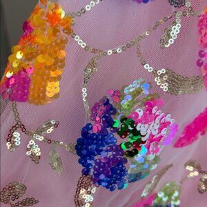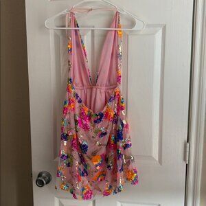 Stunning pink dress adorned with vibrant multicolor sequins. Perfect for a night out. Worn once.
