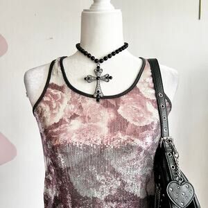 Pink‎ Sequin Floral Tank Top, Y2K Coquette 2000s Glam Maximalist Mc Bling Small