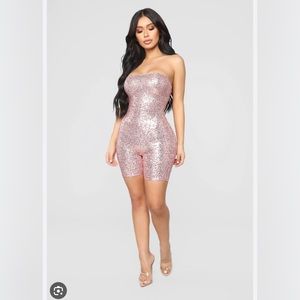 Dance! Dance the night away! This Barbiecore Fashion Nova sequin, one piece romper is perfect for Halloween! The pictures don’t do it justice. It is so sparkly, and adorable! Add metallic boots, a feather, boa, or sparkly high heels! You could also wear it out dancing! This is a rare plus size 1X, stretchy, sequin, strapless, romper. When laid flat, the top and waste measure 18 inches across. The hips measure 21 inches across. This has plenty of stretch. There is a no slip band at the top. It is fully lined with a nude stretch fabric. There is a zipper in the back. From top to bottom it measures 31 inches, all measurements are shown in photos. If you are a plus size Barbie, this outfit is for you!