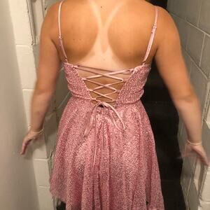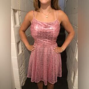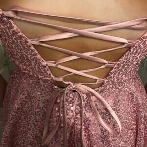 Pink Sequin Semi Formal Cocktail Dress Corset Back size 2
