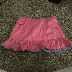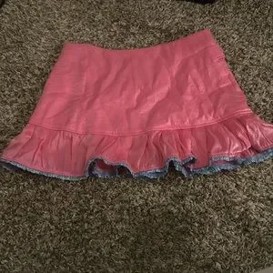 Super cute pink mini skirt and matching top with blue detailing, never worn and has zipper up the side from Elsie and Fred