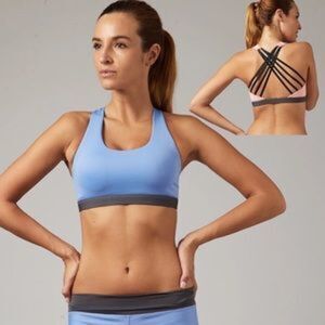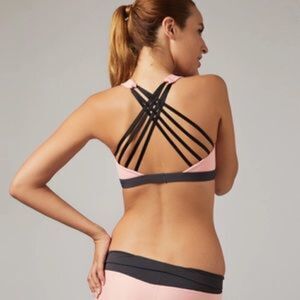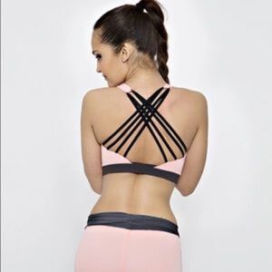 New!! Sexy cross string back sports bra in pink. Light, easily removable padding. Also available in blue.