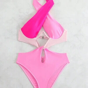 Pink Sexy Women's Beach Colorblock Cut-Out Halter One Piece Swimsuit