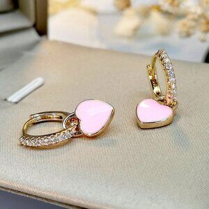 Pink Sexy Women's Cubic Zirconia Decor Heart Drop Earrings Valentines