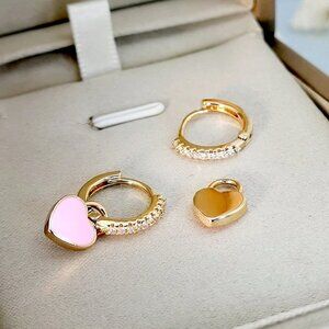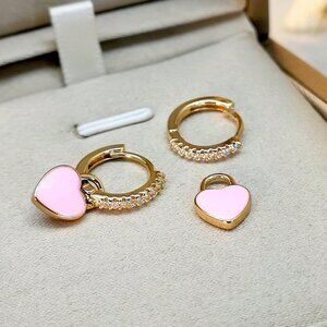 Pink Sexy Women's Cubic Zirconia Decor Heart Drop Earrings Valentines