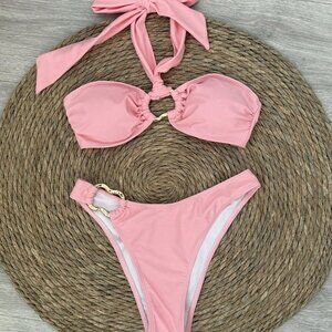 Pink Sexy Women's Halter Neck Bikini Set