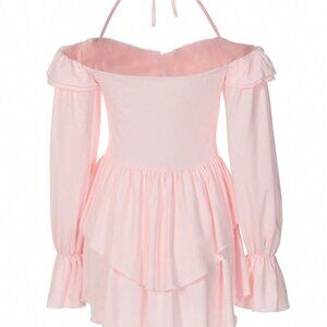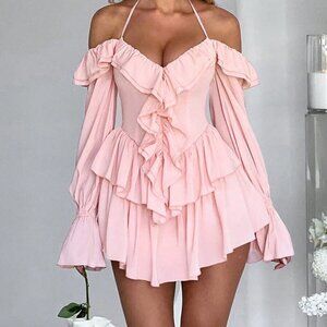 Pink Sexy Women's Ruffled Bodycon Halter Top Jumpsuit