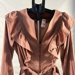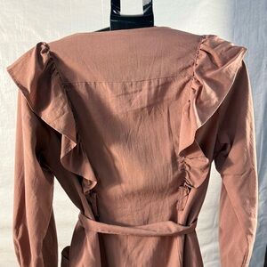 This pink sheath midi dress is perfect for both casual and work settings, featuring a stylish plunge neckline and elegant bishop sleeves. The dress offers a flattering silhouette with its structured design and soft fabric that drapes beautifully.