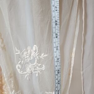 Pink Sheer Netting Embroidered Long Button Up Vest Shirt Side Slits