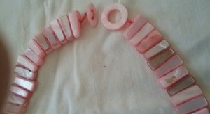 All shell, including the clasp. This edgy shell necklace is 20 1/2". A simple look. This necklace will make a wonderful accent for any outfit.