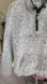 Cozy sherpa pullover with a half-zip design. Features a black and white pattern. With a front pocket.