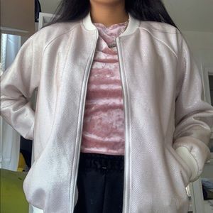 - super cute light pink shimmer jacket to add a eye catching look to your outfit!