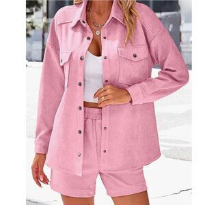Pink Shirt Jacket Oversized Shacket Button Down Long Sleeve Medium