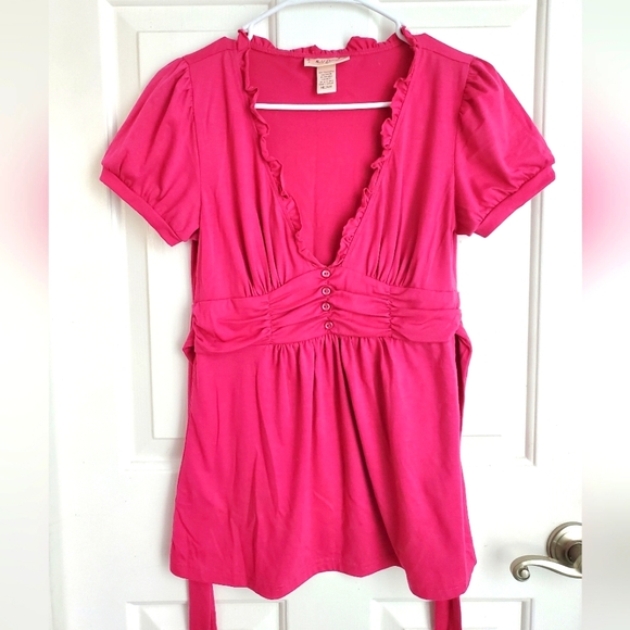 Pink Shirt with Ruffles and tie in back Size M Good Condition Let me know if you have any questions