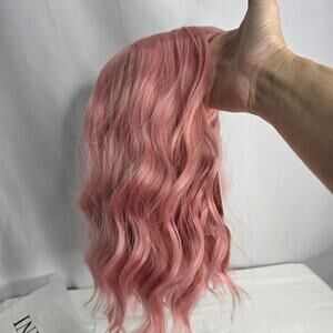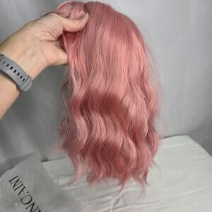 Pink Short Bob Wig with Bangs for Women Loose Wavy Synthetic Cosplay Costume