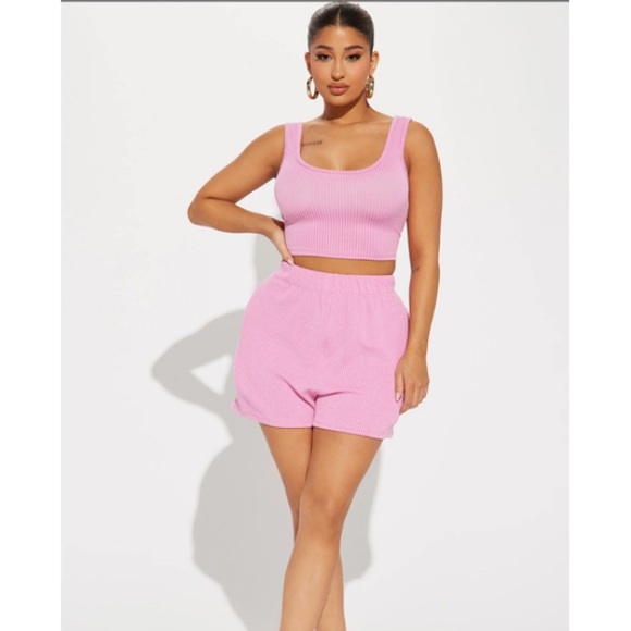 NWOT Pink co ord set featuring ribbed sleeveless crop top and matching high waist shorts