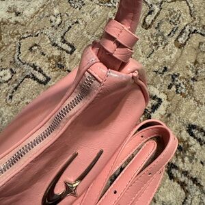 Pink shoulder bag with crossbody strap