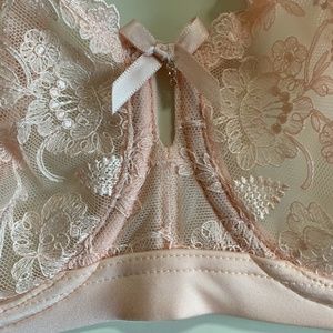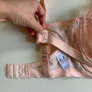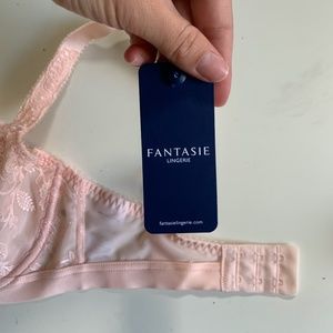 Lacy unlined Fantasie bra in US size 30G/UK 30F. LOVE this but it is out of my price range and I shouldn't have bought it (or the black one of the same size in my closet). I am listing this item for one month to try and make up for my mistake. NWT, only worn to try on. Dreamy soft band and flower lace detailing on cups. Fantasie runs a little small in the cup. I am normally a UK F cup but this one was a *little* snug. Not too bad, but definitely something to keep in mind. avail till end january