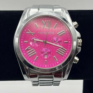 Pink & Silver Michael Kors Men’s Watch. Fully functional with brand new batteries. Fits 7 1/2 in wrist. Has a day window!!!