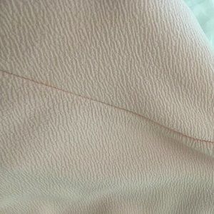 Baby pink textured halter neck dress! Fit and flare/skater style. Pleated, mid-thigh length. Hidden zipper and cute bow detail!