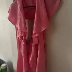 Chic pink sleeveless dress with elegant ruffles. Perfect for any occasion.