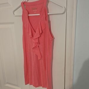 This stylish pink sleeveless top features a charming ruffle design, perfect for any casual outing.