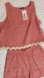 Stylish pink sleeveless top and shorts set with cream trim. Perfect for casual wear.