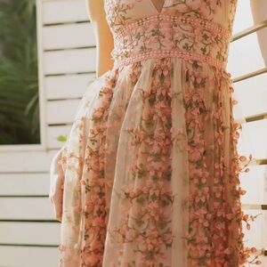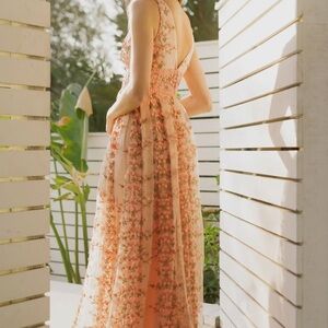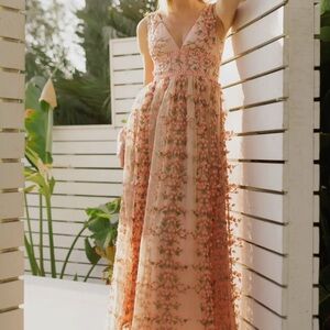 This enchanting pink maxi sundress features a sleeveless design and a flattering V-neckline, perfect for weddings or cocktail events. The dress flows gracefully to the floor, embodying a timeless elegance with its sundress style.