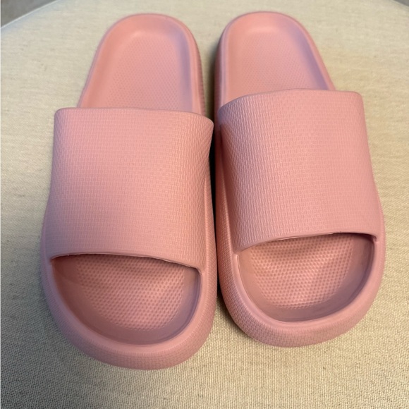 Comfortable pink slide sandals. Perfect for casual wear.