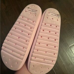 Comfortable pink slide sandals. Perfect for casual wear.
