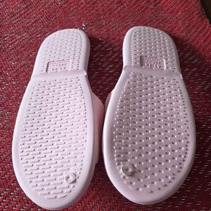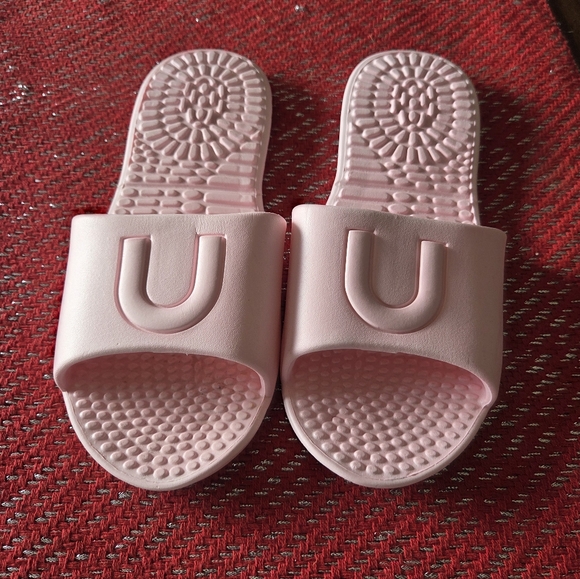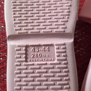 Comfortable pink slide sandals with textured soles.