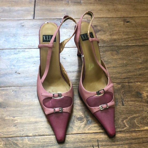 Two-tone pink sling back heels. Peeling non inside as shown but not visible while wearing.