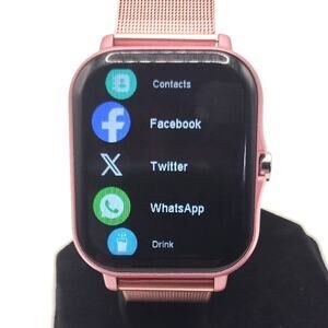 BRAND NEW State of the Art High Quality Metallic PINK Smartwatch + Stainless Steel & Silicone Bands. 100% compatible with Android & Apple (NOT AN ANDROID OR APPLE BRANDED PRODUCT). Long Lasting Lithium Ion Battery! Also Available in Gold, Black or Silver!