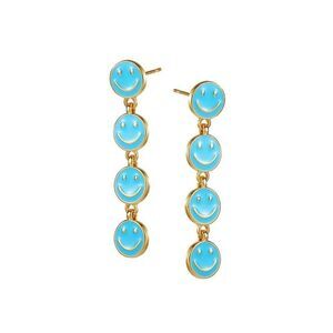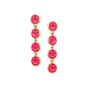 Pink Smiley Face Dangle Earrings, Colorful Enamel Smiley Face Earrings, Happy Fa