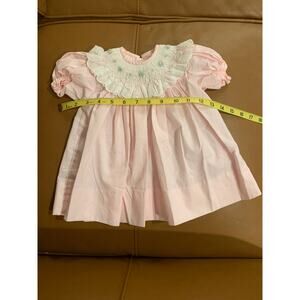 Pink Smocked Baby Dress Embroidered Collar Classic Heirloom Infant Puff 3 Month
