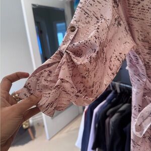 Stylish pink patterned dress with button-up front and waist tie. Perfect for casual outings. Mother’s Day, brunch, lunch date, perfect for any occasion