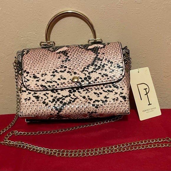 Elevate your style with the Pink Snake Print Handbag. This chic accessory features a striking snake print design, perfect for any occasion. The elegant gold chain adds a touch of sophistication.