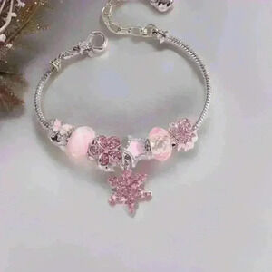 New Pink Snowflake & Charms Bracelet with Sparkling Rhinestones