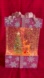 Lighted snowglobe shaped like a pink gift box with reindeer and Christmas tree. Motor provides continuous glitter movement. 8” high and 5” wide. Requires 3 AA batteries. Included. Excellent preowned condition in working order.