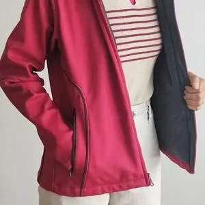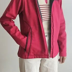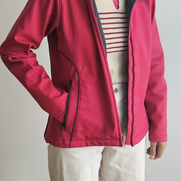 Columbia softshell jacket in a vibrant red/pink color. Worn only a couple of times, still in excellent condition. Great for outdoor activities, casual wear, or layering in cooler weather.