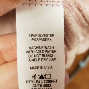 Adora brand top, fits true to size. A little thicker material and has a very flattering fit. Has gold sparkles on the material. 94% polyester, 6% spandex.