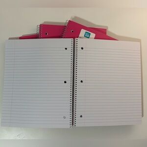 Set of four pink spiral notebooks. Perfect for school or office use.